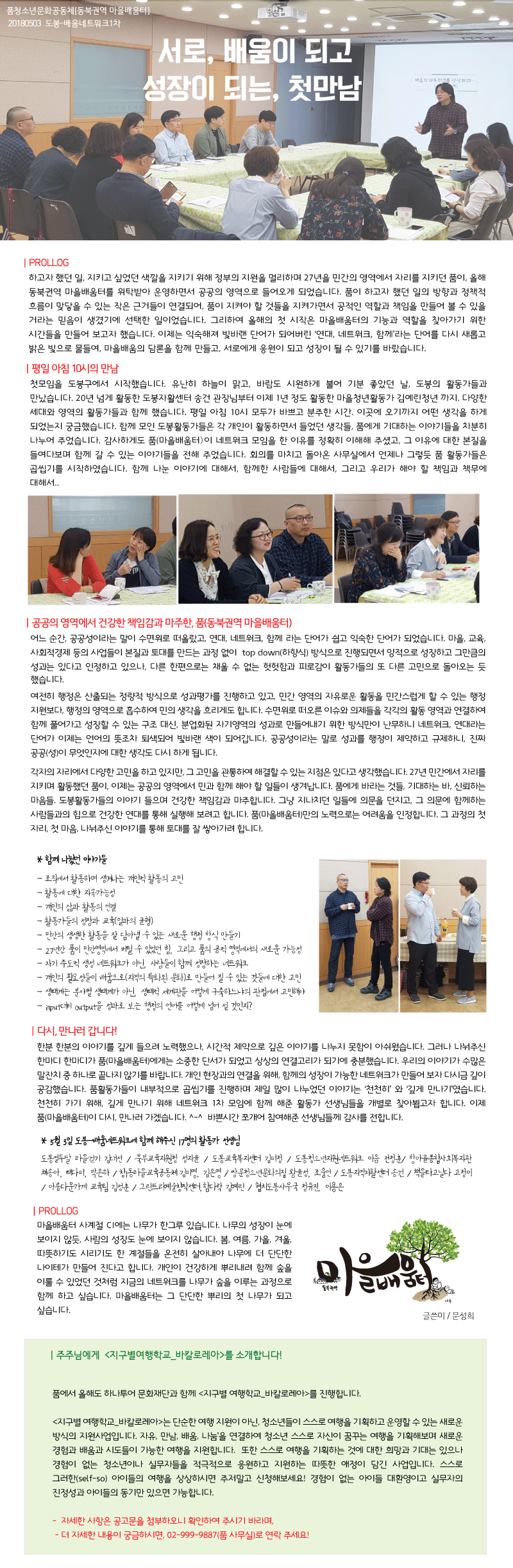 [2018] 품(동북권역 마음배움터)의 첫 발걸음을 전합니다!