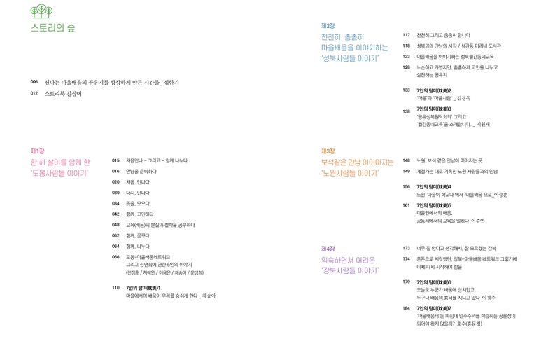 '신나는 마을배움의 공유지를' 두드리다 스토리의 숲(목차)입니다.